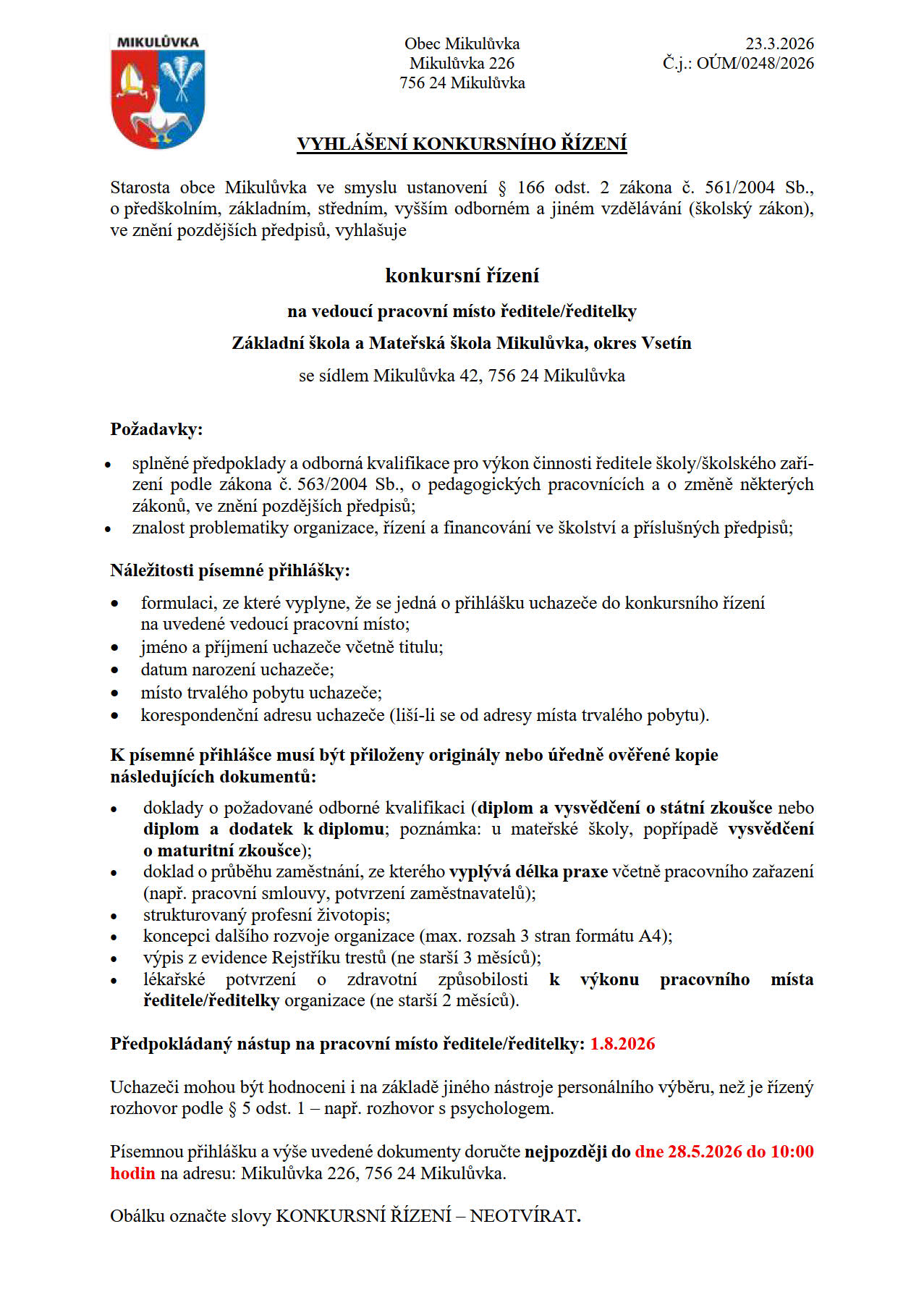 Die Gemeindeverwaltung Ratiboř teilt mit, dass die Abholung der Wertstoffsäcke für Kunststoffe und Metalle aufgrund der Osterfeiertage ausnahmsweise bereits am Montag, dem 30. März, stattfindet.