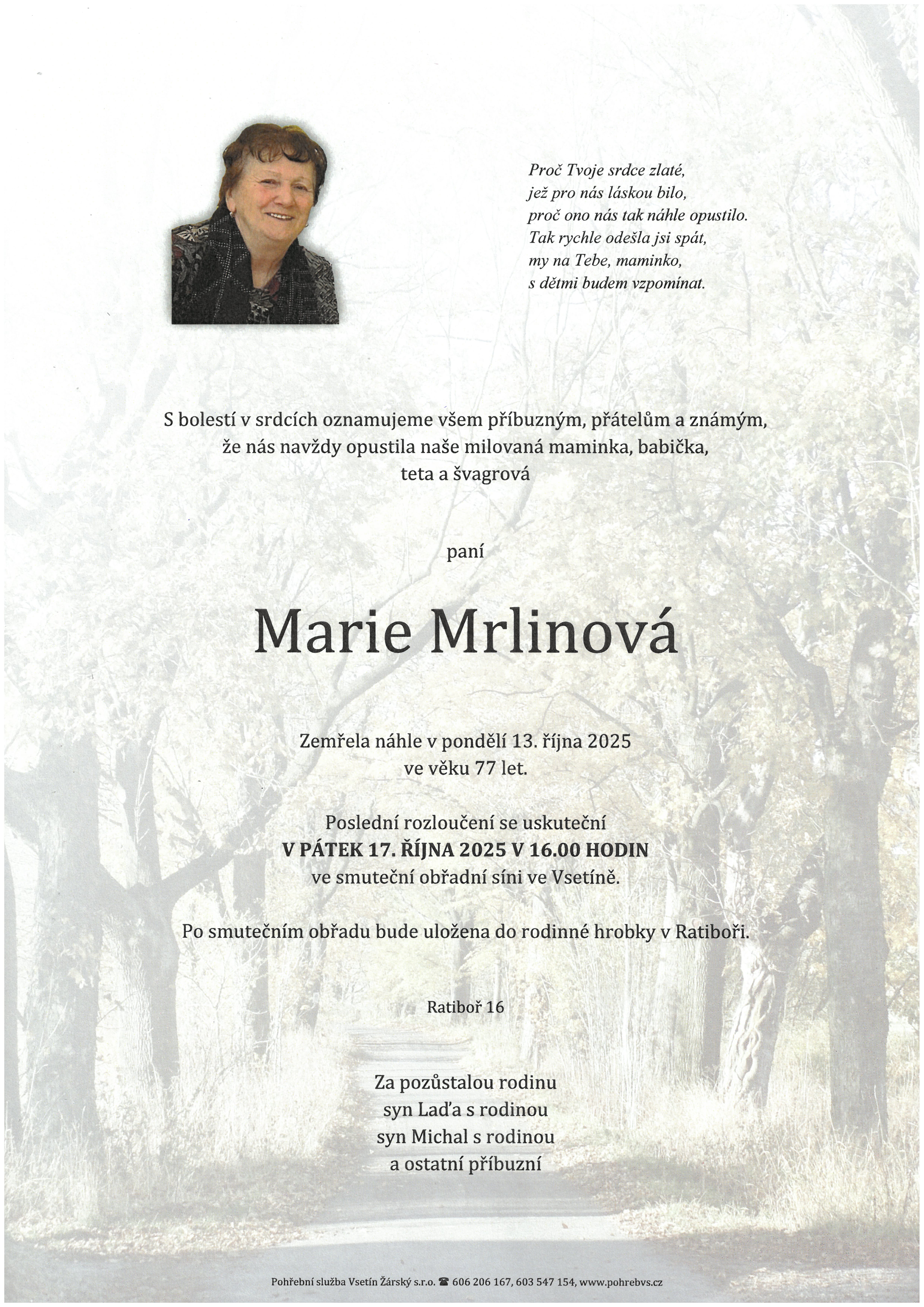 Todesfälle Marie Mrlinová / 77 let Parte |