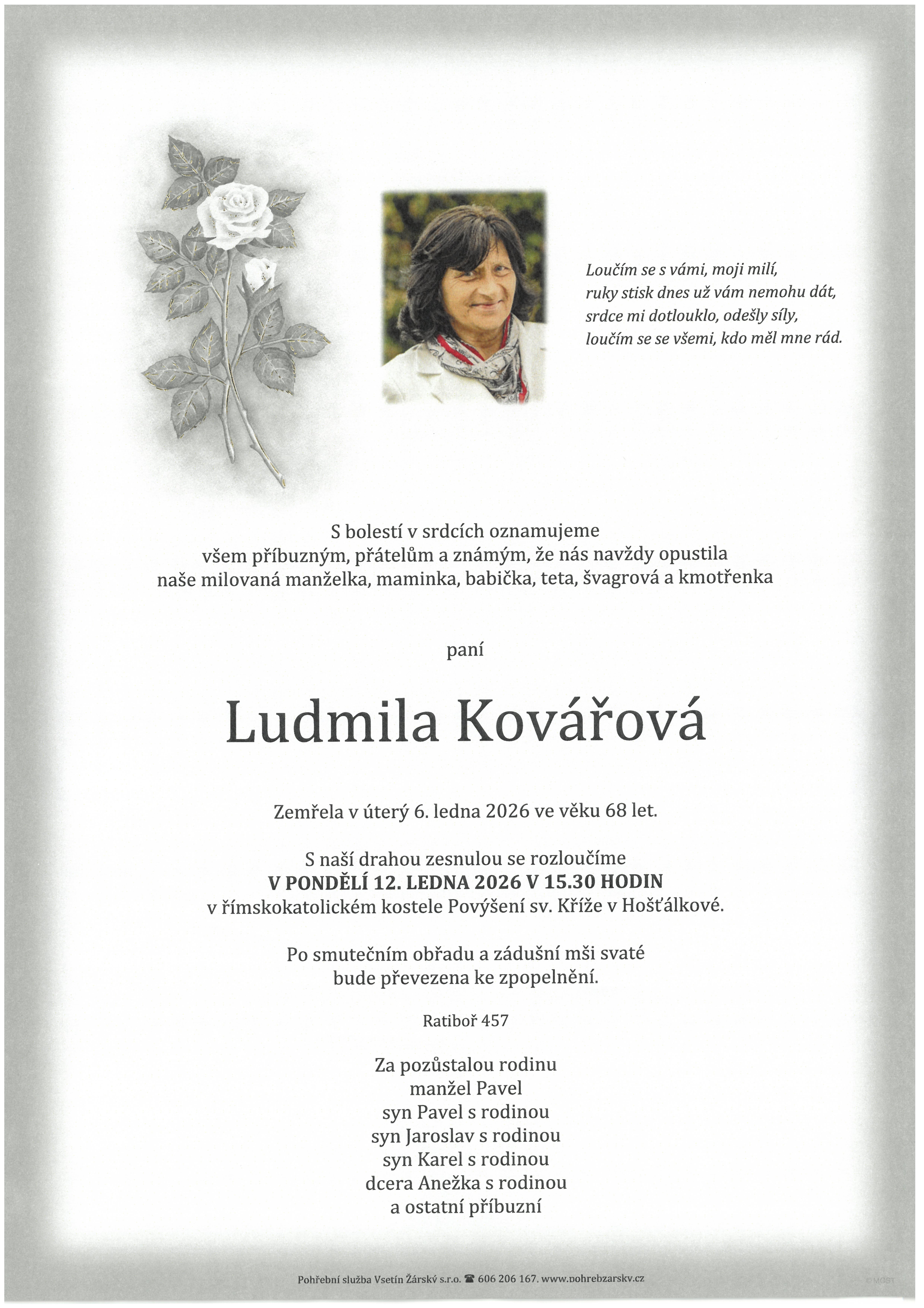 Death Ludmila Kovářová / 68 let Parte - Ludmila Kovářová |