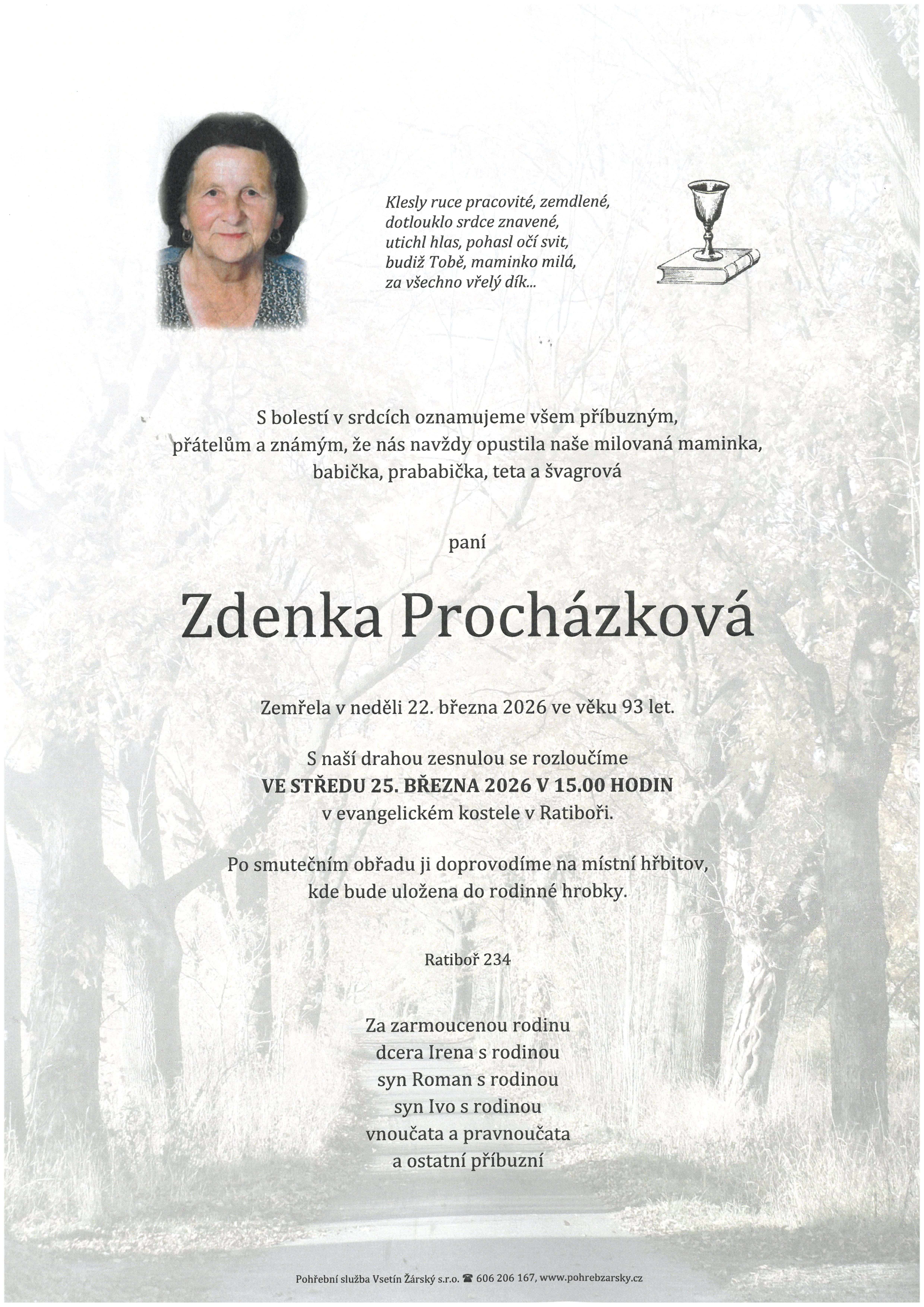 Death Zdenka Procházková / 93 let Parte - Zdenka Procházková |