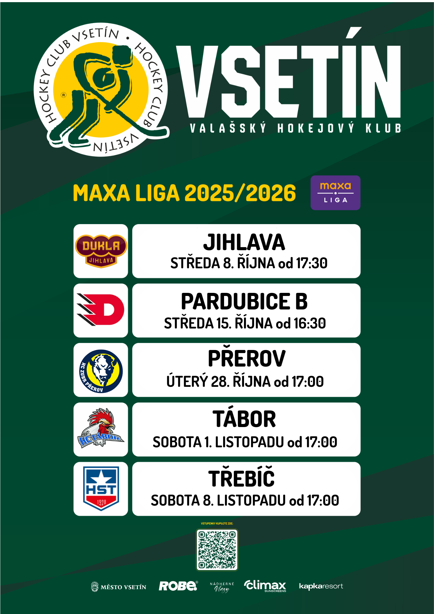 VHK Vsetín - nejbližší hokejové zápasy