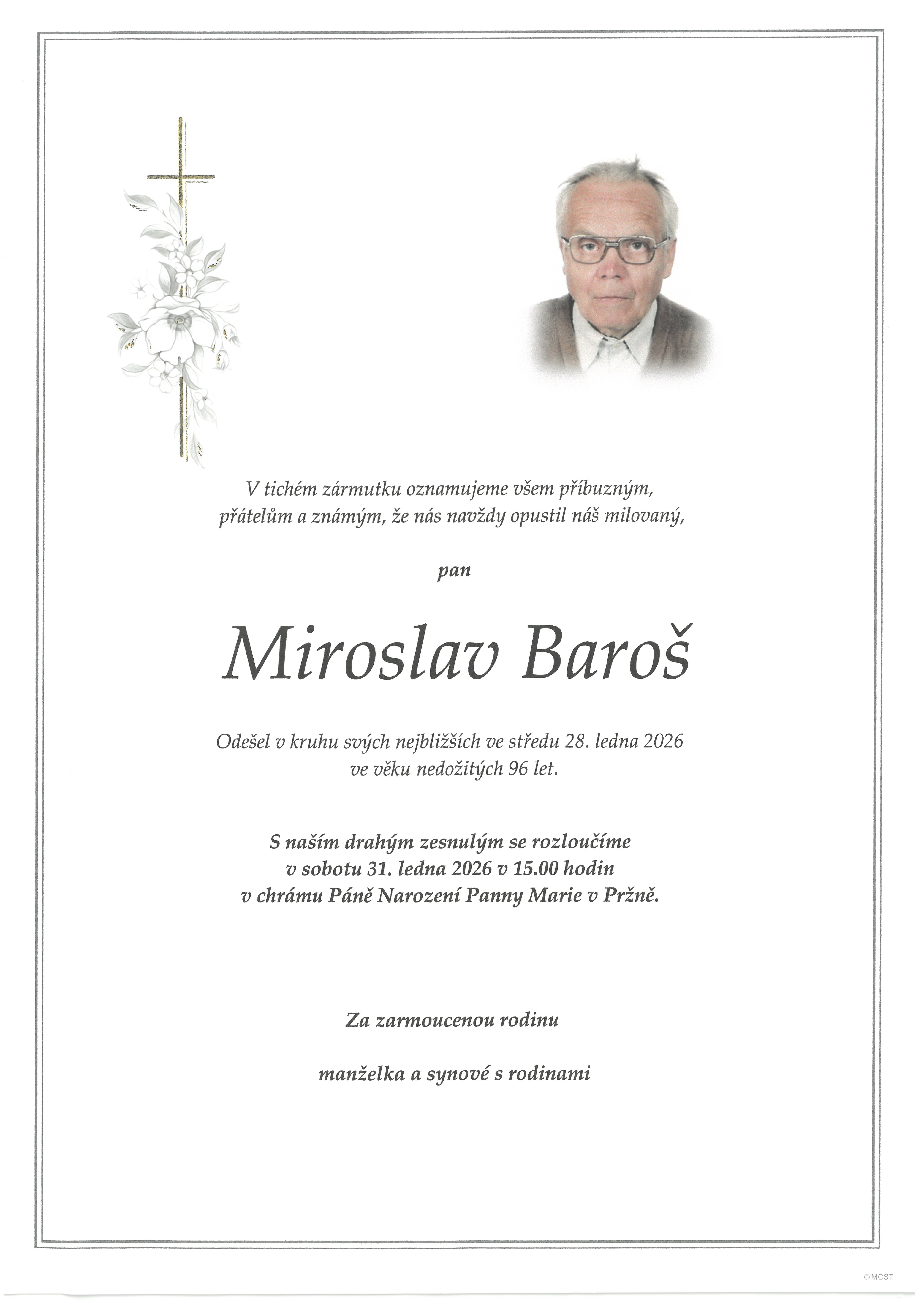 Úmrtí Miroslav Baroš / nedožitých 96 let / bývalý občan Parte - Miroslav Baroš |