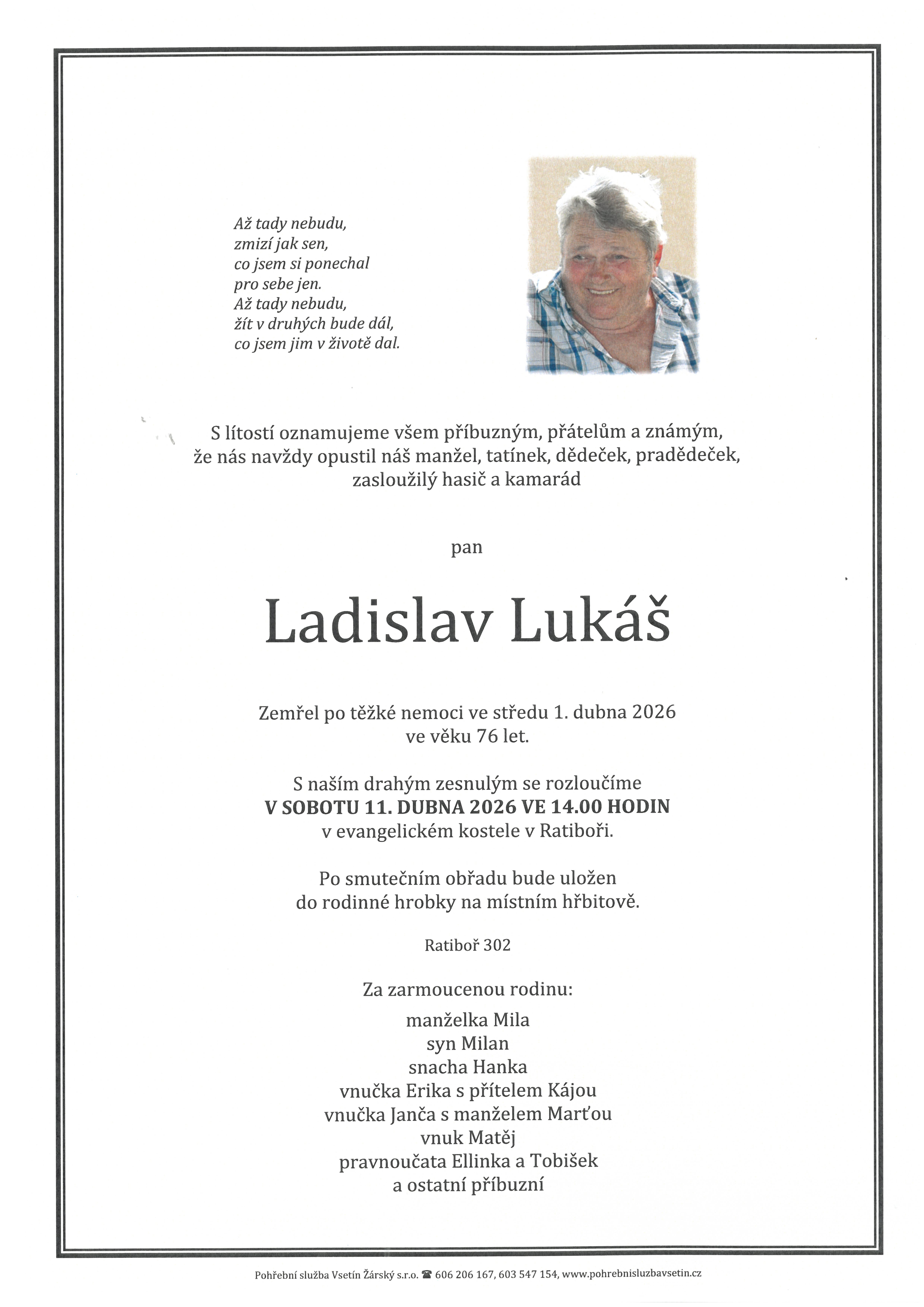 Úmrtí Ladislav Lukáš / 76 let Parte - Ladislav Lukáš |
